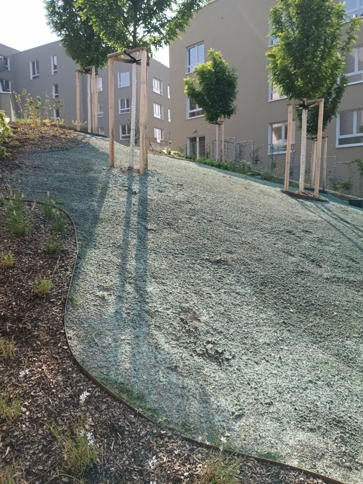 - Založení trávníku na špatně přístupných plochách jako jsou např. svahy u liniových staveb nebo zelené střechy budov