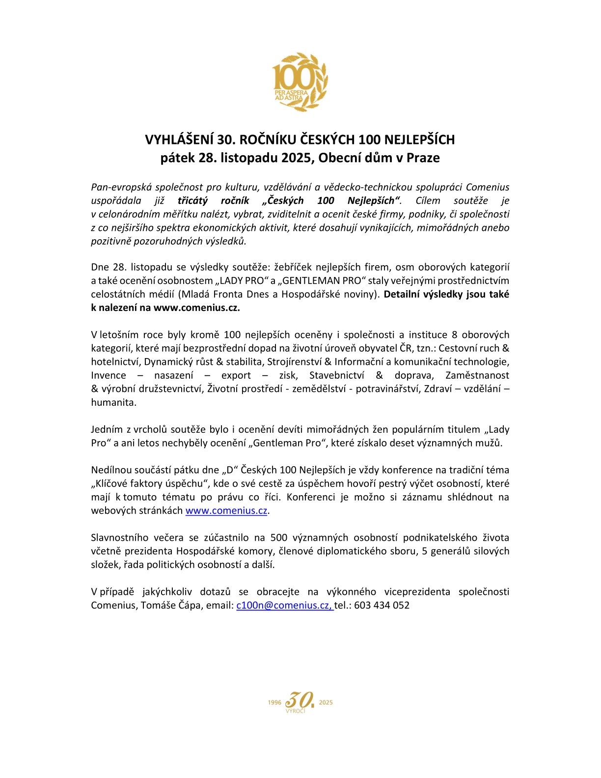 Více informací k ocenění Českých 100 Nejlepších: