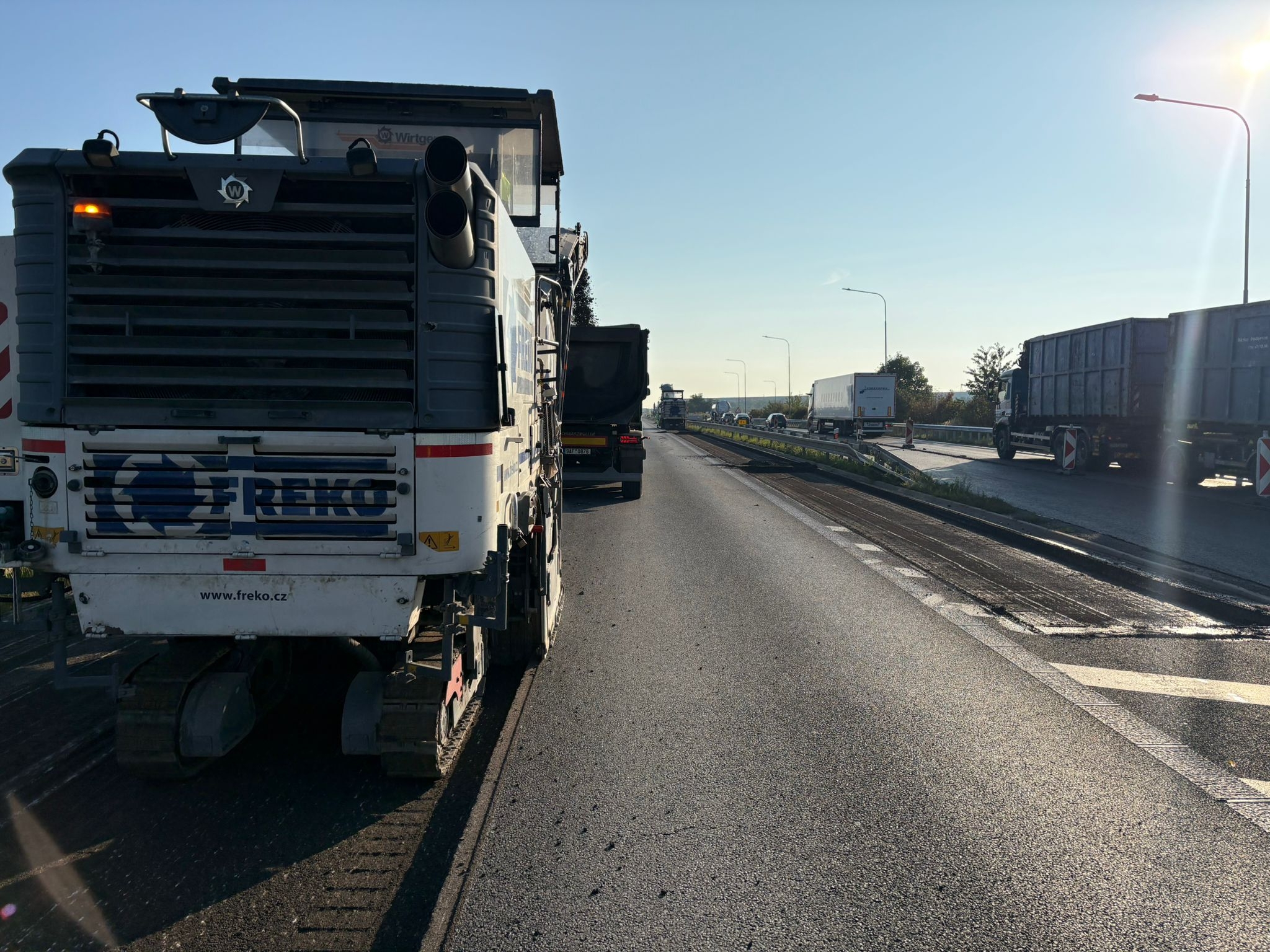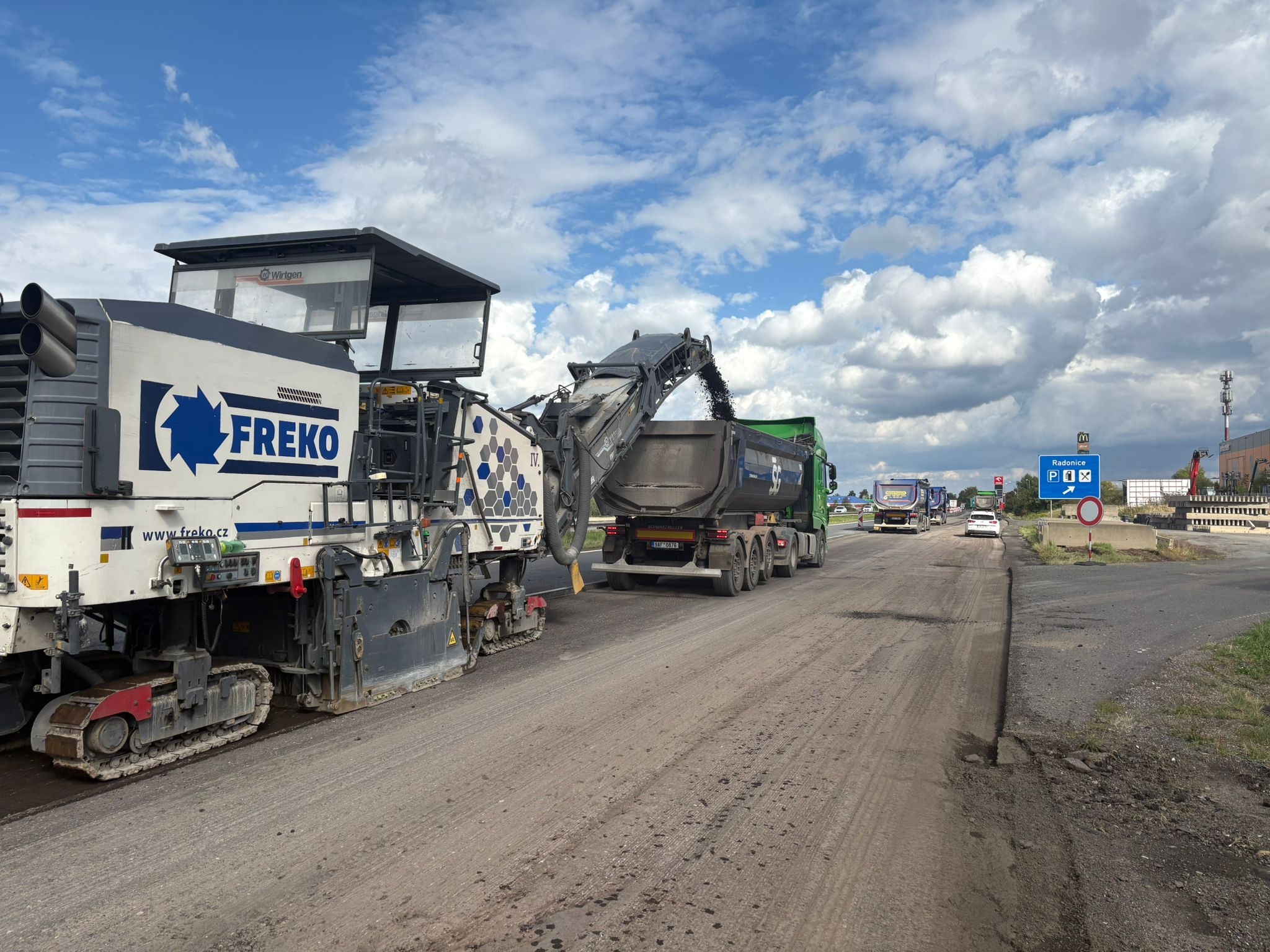 Freko opět frézovalo, zajišťovalo dopravu vyfrézovaného materiálu včetně zametení a dobourávání komunikací i v rámci II etapy oprav