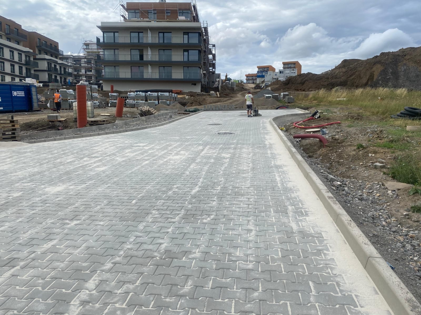 Naše společnost se na tomto projektu podílí na realizaci komunikací a chodníků včetně podkladních vrstev.