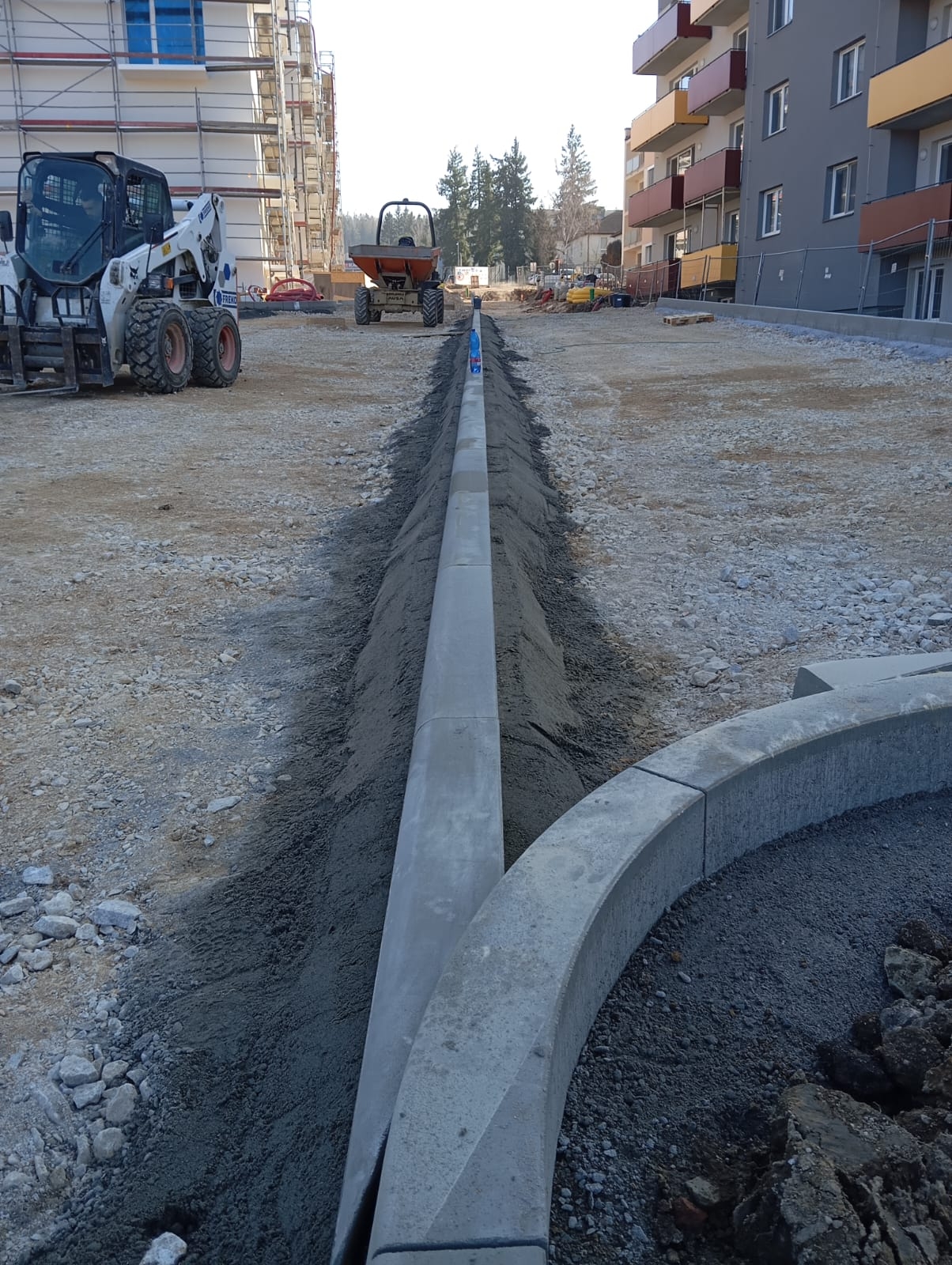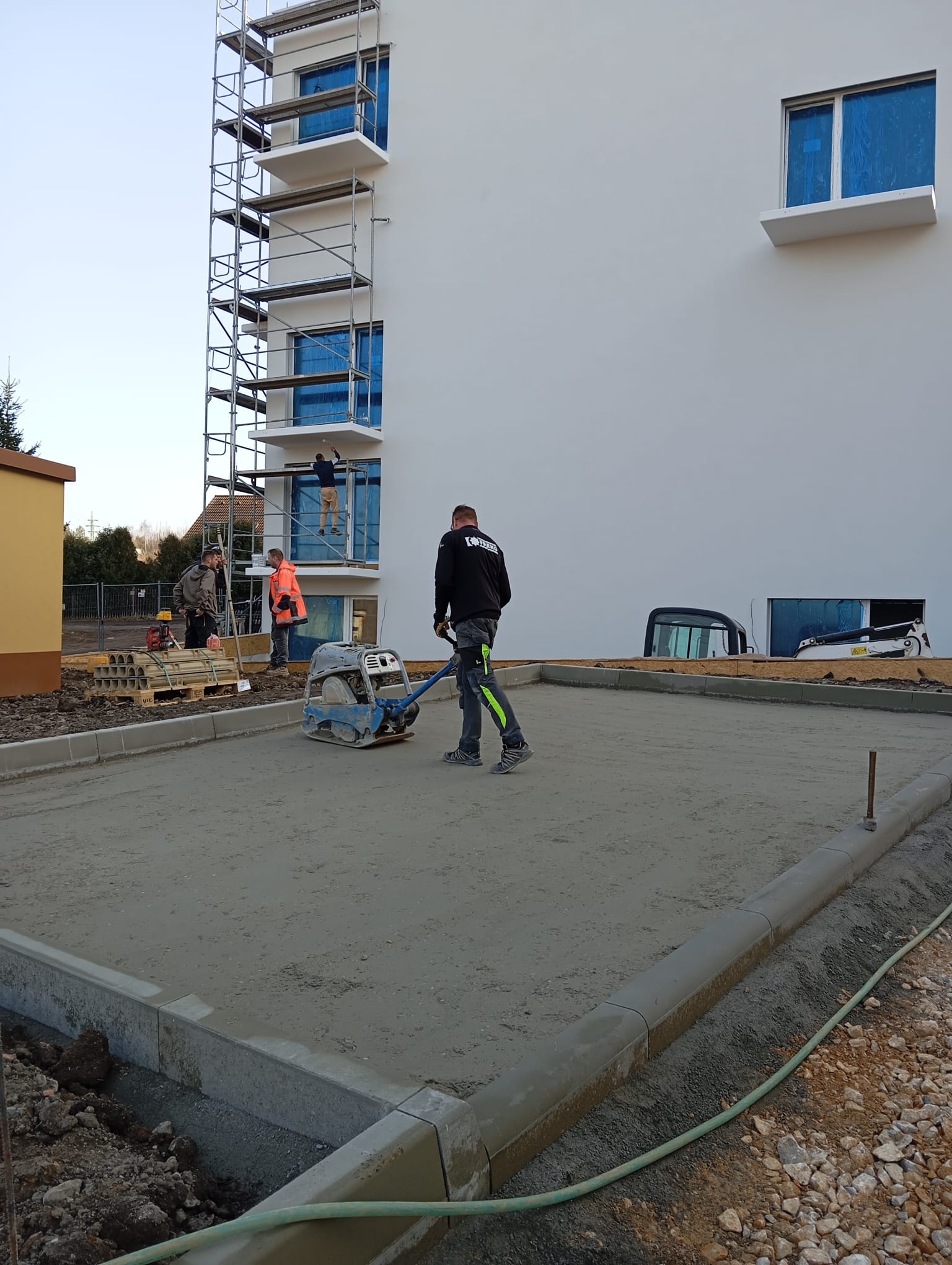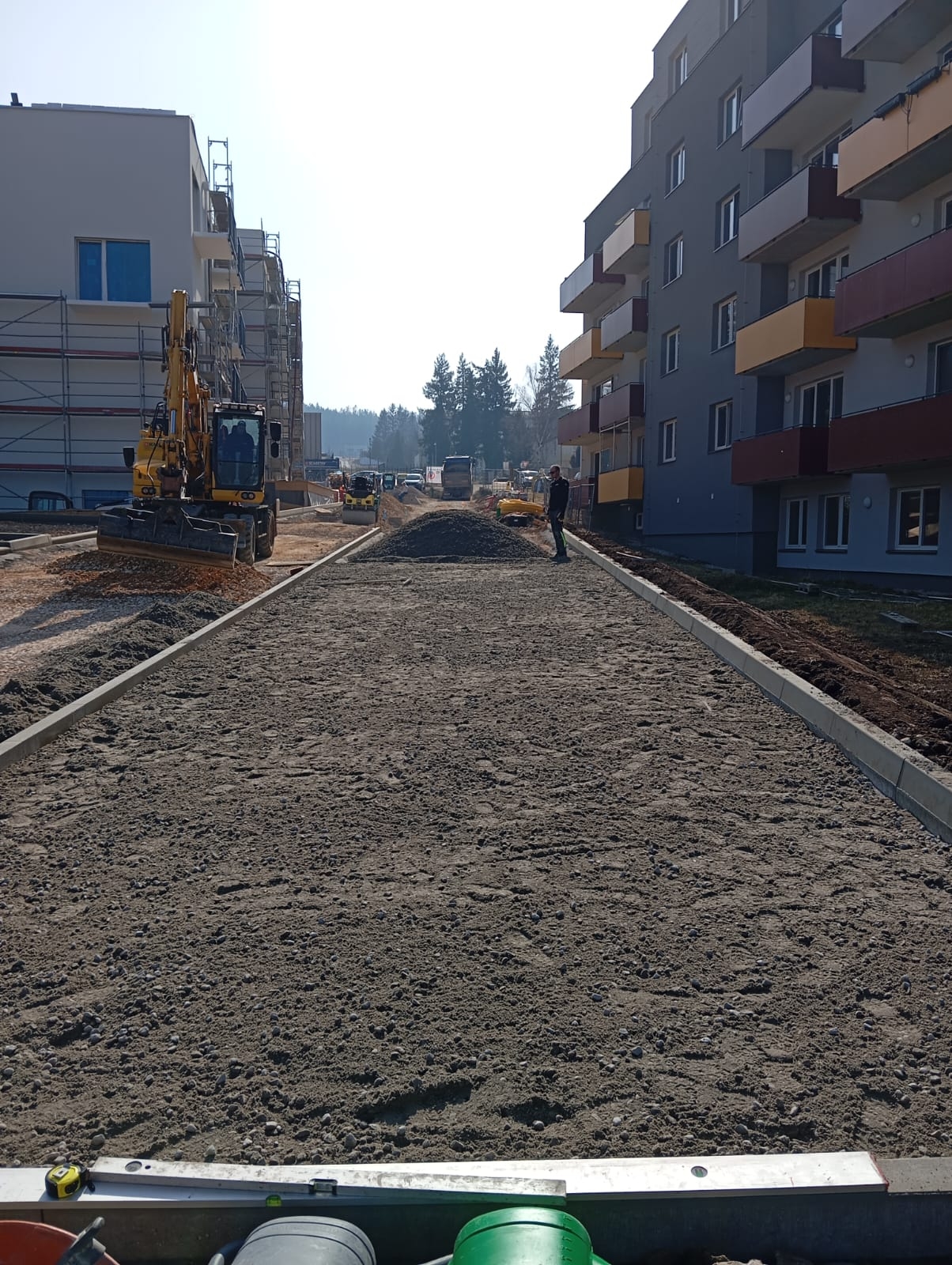 FREKO zahájilo první stavbu v letošním roce. Jedná se o výstavbu dlážděných komunikací, včetně parkovacích stání u Domova seniorů v Jincích u Příbrami. Zadavatelem zakázky je společnost Strabag.