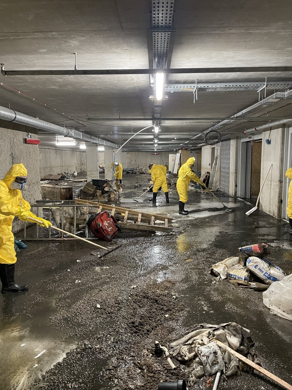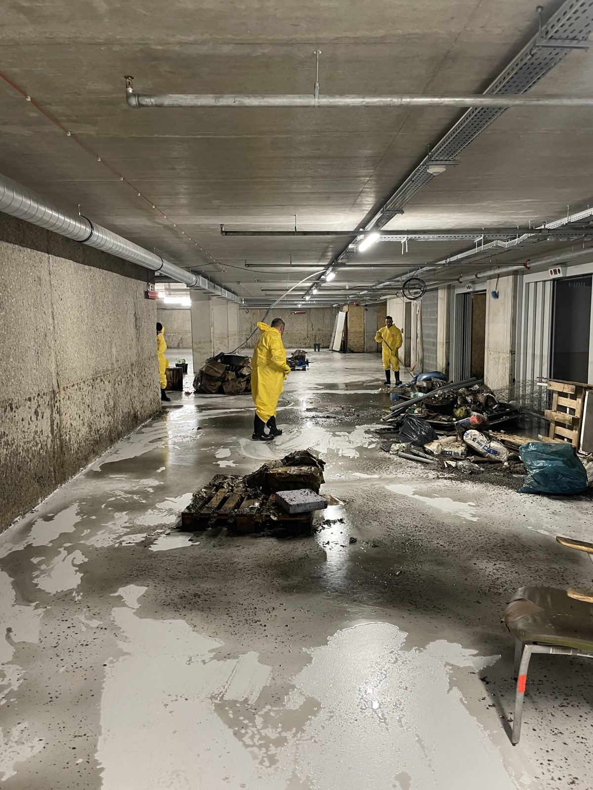 Společnost Hinton a.s. poptala naší společnost na sanační práce v objektu BD Milosrdných v prostoru 2PP, ve kterém došlo k havárii potrubí, které mělo za následek protečení prostor splaškovou vodou a znehodnocení zařizovacích předmětů, uloženého materiálu stavebního a provozního charakteru a silnou kontaminace podlah a stěn. Splašková voda byla odsáta specializovanou firmou a následně jsme my zahájili činnosti. Bylo potřeba provést úklid prostor kontaminovaných splašky, vymístit kontaminovaný a znehodnocený materiál a předměty z objektu BD do velkoobjemových kontejnerů a odvézt k odstranění. Dále pak pečlivě vyčistit podlahy, stropy a stěny horkou tlakovou vodou a poté je ještě odborně vydesinfikovat. Celá sanační činnost byla komplikována tím, že v místnostech, které byly kontaminovány splaškovou vodou, byly zvýšeny bakteriální limity a vyskytoval se zde velmi silný zápach. Naši pracovníci museli v těchto podmínkách v rámci BOZP pracovat ve speciálních pracovních oblecích a v ochranných maskách tak, aby nebylo ohroženo jejich zdraví. Předmětné dílo jsme již předali zadavateli.