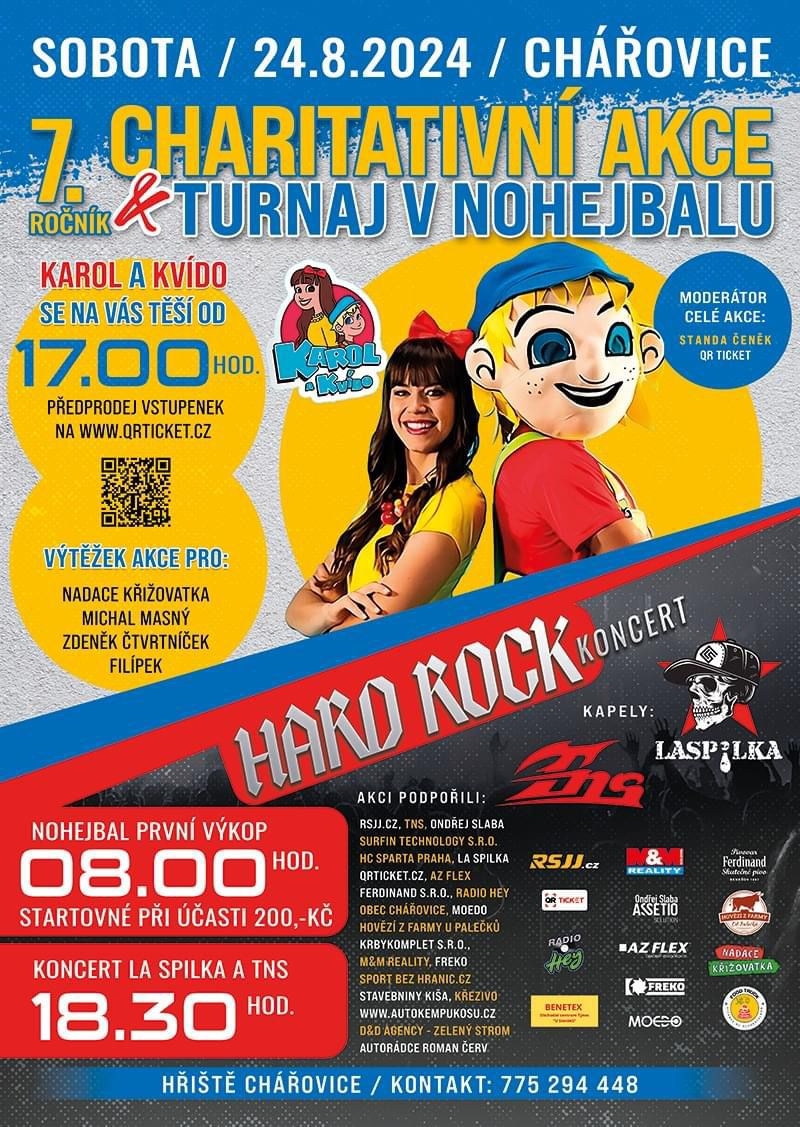 36 stupňů ve stínu, rozpálené nohejbalové hřiště, 12 teamů, jejich vysoká sportovní úroveň, profesionální výkony na síti.....to bylo nohejbalové klání v Chařovicích, které bylo jedním z programu celého zábavního dne. Freko reprezentovali borci Tomáš Kolinger ml; Tomáš Kolinger st; Martin Vejsada kapitan teamu a Aleš Hettner. Na síti se objevil rovněž Martin Zítka z Freka, hrající ale bohužel za domácí team. Jemu jako spoluorganizátorovi patří dík, jakožto i dalším nadšeným chářovickým organizátorům za skvěle zorganizovanou charitativní akci, která se protáhla až do večerních hodin. Finanční výtěžek z této akce následně putoval Nadaci Křižovatka, Filípek, Michal Masný a Zdeněk Čtvrtníček.